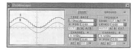 Рис. 12. Осциллограммы выходного сигнала ЦАП (А) и входного АЦП (В)