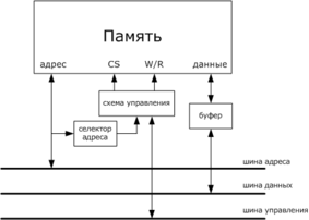 Обобщённая структурная схема присоединения памяти к магистралям: