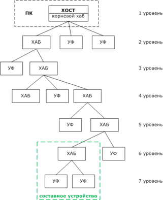 Хост (главный узел) и устройство-функция (законченный функциональный узел, предназначенный для выполнения какой-либо специфической функции). А объединяющий оба – составное устройство.