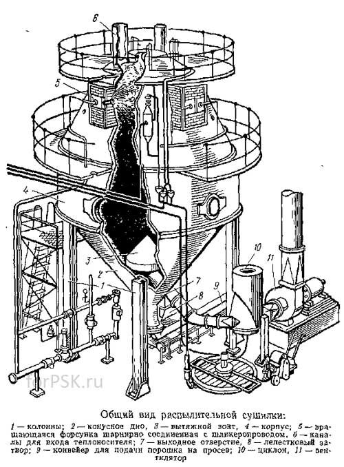 Распылительная сушилка. Схема и принцип работы.