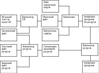 Последним шагом в процессе компиляции и компоновки программ всегда является связывание двоичного файла ресурсов (RES) и программного файла (ЕХЕ) в единый Windows - выполнимый файл (ЕХЕ). Для этого снова используется компилятор ресурсов. Эта команда является последней при создании Windows - программы,