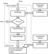 Логика работы приложения Windows другая. Прежде всего выполняются инициализирующие действия, связанные, например, с определением классов, на базе которых в дальнейшем (или сразу) будут создаваться окна приложения. Для каждого класса необходимо указать адрес функции окна. Эта функция будет обрабатывать сообщения, направляемые окнам, создаваемым на базе класса.