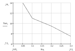 Рис.13. Зависимость времени выхода на стационарный режим от коэффициента усиления
