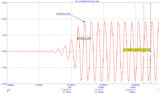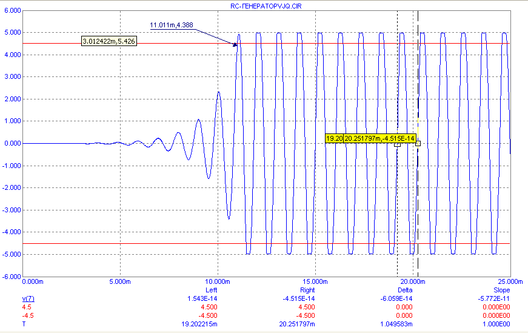 -в генераторе с лин. ОС 11 мс(по результатам моделирования 11 мс)