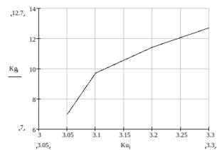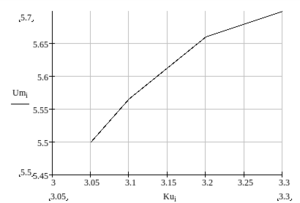 Рис.14. Зависимость амплитуды первой гармоники от коэффициента усиления