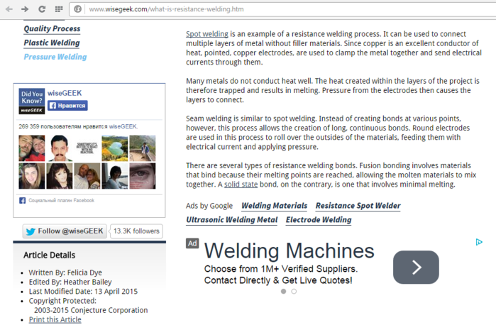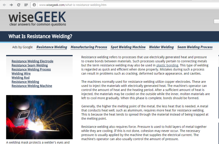 Контактная сварка относится к процессам, которые используют электрически выделяемое тепло и давление, чтобы создать связи между материалами. Такие процессы, как правило, относятся к соединительных металлов, но сварки сопротивлением Термин также может быть использован в пластиковом связи. Этот тип сварки рассматривается как быстро и эффективно, когда сделано должным образом. Ошибки во время такого процесса может привести к таким проблемам, как крекинг, деформированной поверхности внешний вид, и полостей.