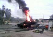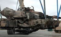Разрушение кормовой ниши «Абрамса» с вышибными пластинами в результате попаданий ПТС.