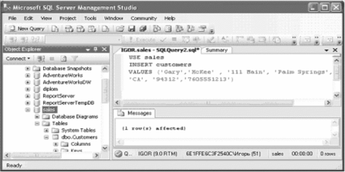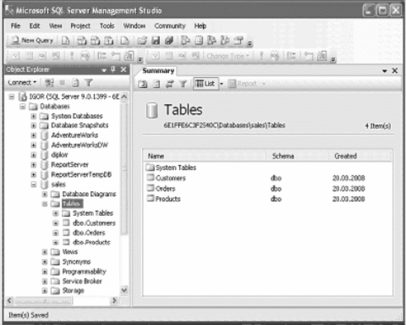 Откройте SQL Server Management Studio. В окне Object Explorer раскройте папки Databases=>Sales.