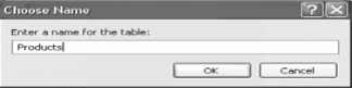 В открывшийся блок Choose Name введите имя Products (рис. 8)