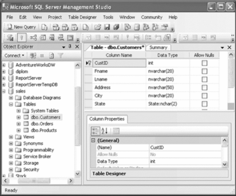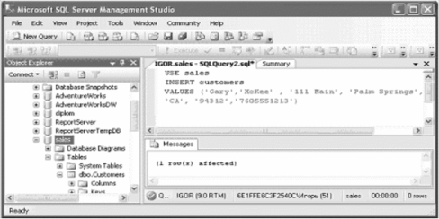 В Object Explorer раскройте папки Databases=>Sales=>Tables.