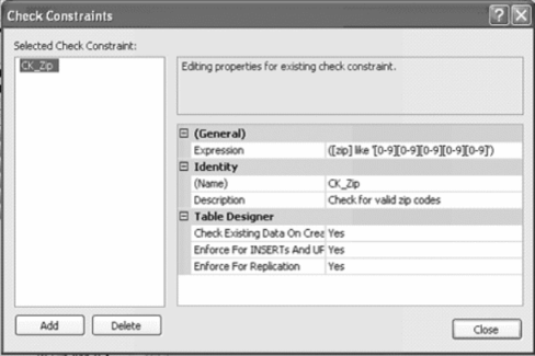 Чтобы создать ограничение, принимающее пять чисел, которыми могут быть только цифры от 0 до 9, в текстовый блок Expression введите следующий код (рис. 10):