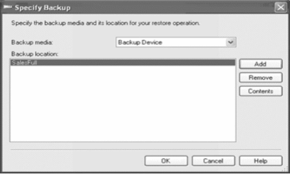 В диалоговом окне Specify Backup из раскрывающегося списка Backup Media выберите элемент Backup Device и щелкните на кнопке Add.