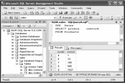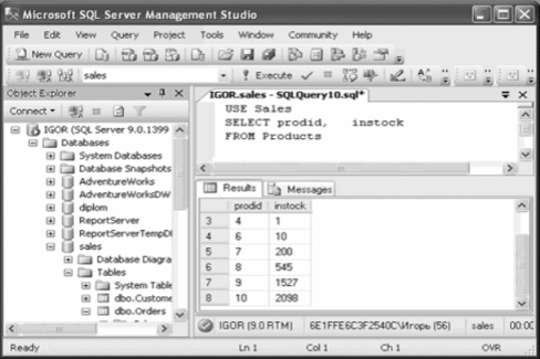 из столбца instock таблицы Products, щелкните на кнопке New Query и выполните следующий код:
