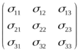. В трехмерном пространстве есть 3 направления, следовательно, имеем 9 компонент. Тензор напряжения – симметричный, то есть