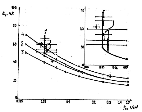 Изменение скорости звука в зависимости от плотности среды изображено на рисунке: