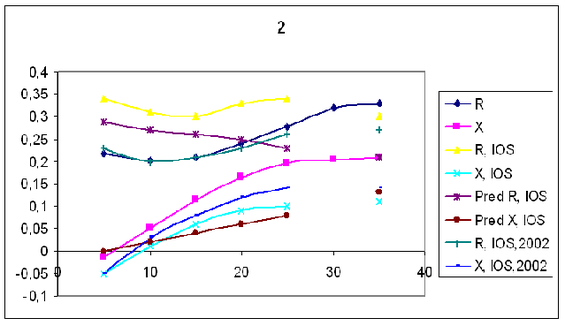 Видно, что мнимая часть импеданса на низких частотах – отрицательна; с повышением частоты возрастает, и на какой-то частоте пересекает ось абсцисс, т.е. равна нулю. При этом импеданс – чисто действительный. Действительная часть импеданса (сопротивление дыхательных путей) больше, чем мнимая, плавно изменяется с ростом частоты. Минимальные используемые частоты равны 5 Гц, потому что при этих частотах не проявляется собственный высокочастотный спектр дыхания человека, который сильно проявляется при более низких частотах.