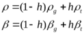. Тогда плотность равна сумме плотностей фаз, а сжимаемость – сумме сжимаемостей, то есть: