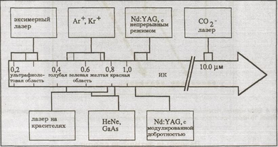 Рисунок 5. Типы лазеров, наиболее часто применяемые в медицине.