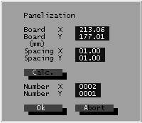 осле загрузки файла сверления, Вы можете мультиплицирвать его (осуществить пошаговое повторение всех данных по сверлению). Кнопка с названием Panelization в главном меню вызывает диалоговое окно (Рис.13), которое подсказывает Вам размеры платы по X и Y, а также расстояния между шагами.