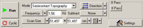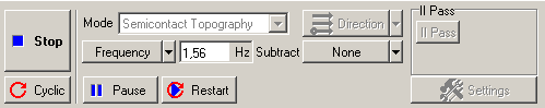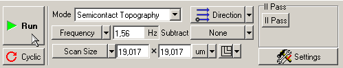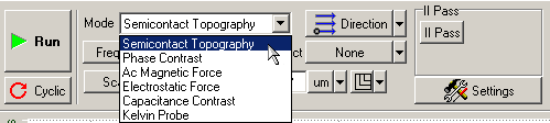 На панели управления в списке Mode (выбор методов сканирования) выберите метод Semicontact Topography. При этом в контроллере автоматически будут выполнены соответствующие переключения.