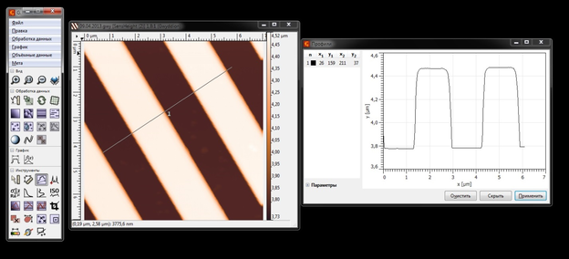 -Построить профиль поверхности образца, используя программное обеспечение установки.