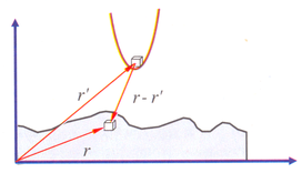 где ns(r) и np(r’) — плотности атомов в материале образца и зонда. Соответственно сила, действующая на зонд со стороны поверхности, может быть вычислена следующим образом: