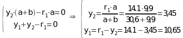 Найдем неизвестные реакции x1, x2, y1, y2, используя законы равновесия для моментов и сил: