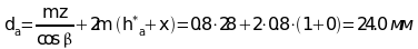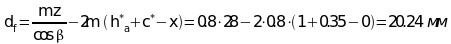 c* - коэффициент радиального зазора, c* = 0.35, т.к. 0.5 < m = 0.8 < 1.