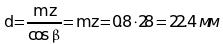 β - угол наклона зубьев, β = 0, т.к. колеса прямозубые.