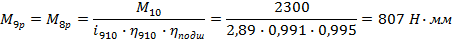 Рассчитываем моменты в соответствие с полученными КПД передачи.