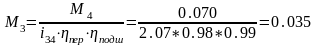 Для того чтобы проверить правильность выбора двигателя, необходимо привести момент на выходном валу к валу двигателя по формуле (1) для каждого вала, начиная от выходного, и сравнить пусковой момент двигателя с приведённым моментом.