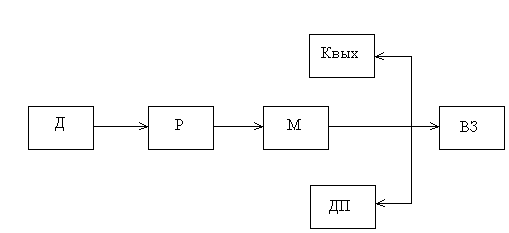 В общем случае ЭМП состоит из трех основных звеньев: источника энергии (электродвигателя Д), передатчика энергии (редуктора Р – преобразующий момент М и угловую скорость