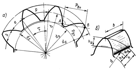 Рисунок 2. Геометрические параметры зубчатых колес