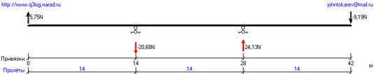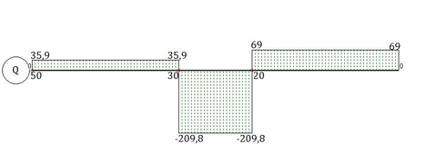 По найденным значениям сил реакций построим эпюры сил, крутящих и изгибающих моментов: