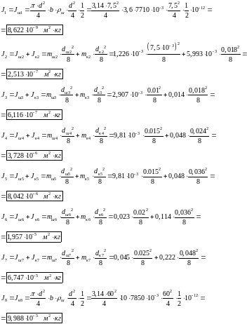. Будем приближенно считать вращающиеся звенья механизма дисками из однородного материала, вращающимися вокруг своих осей симметрии. Тогда момент инерции для них можно найти: