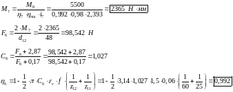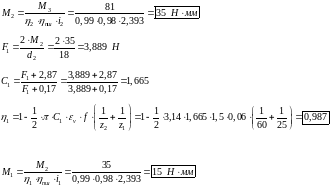 определяют с учетом уточненных значений КПД передачи и подшипников.