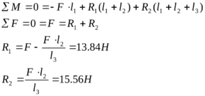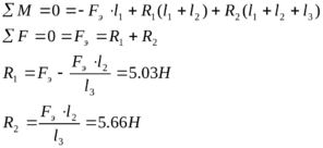 Найдем значения реакций в опорах из условий равенства нулю сумм всех моментов и всех сил: