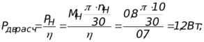 - мощность, необходимая для обеспечения вращения заданной нагрузки с заданной угловой скоростью, приведённая ко входному валу редуктора, Вт;