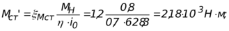 Выберу запас по статическому моменту М ст равным 1,2 из диапазона