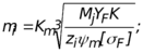 Расчётные соотношения для определения модулей зацеплений (в мм):