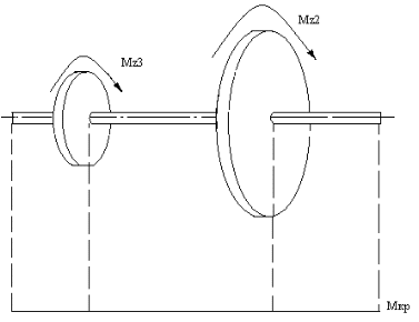 Из эпюры видно, что максимальный крутящий момент действует на участке между зубчатыми колесами. Диаметр валика должен удовлетворять соотношению прочности (см. [9]):