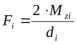 Далее вычислим окружную силу, действующую на каждое колесо по формуле :