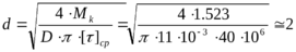 [τ]т = 400 , [τ]=[τ]т/n → [τ]=125 МПа