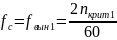 частота вращения вала nкрит2, при которой наступает резонанс, вызванный наличием дисбаланса: