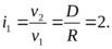 Один из таких вариантов (рис.7,а) состоит из неподвижного конического колеса z1, ведомого z3, а также сателлитов z2 и z4, установленных на T-образном ведущем валу. При вращении T-образного вала сателлиты z2 и z4 катятся по неподвижному колесу z1 и передают движение ведомому колесу z3. Для определения передаточного отношения воспользуемся графиком скоростей, приняв точку C за мгновенный центр качения сателлита z2 по неподвижному колесу z1. На графике скоростей: v1 — скорость центра колеса z2, создаваемая вращением T-образного вала; v2 — скорость точки колеса z2, расположенной на расстоянии диаметра D от точки C, соответствующая окружной скорости колеса z3. Тогда передаточное отношение конического дифференциала при ведущем T-образном валу составит