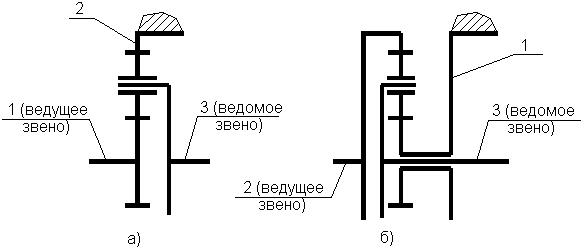 2=0), водило назначим ведомым звеном планетарного ряда, а малое центральное колесо - ведущим звеном (рис.6а). Тогда в соответствии с (1) передаточное отношение механизма будет определяться следующей зависимостью: