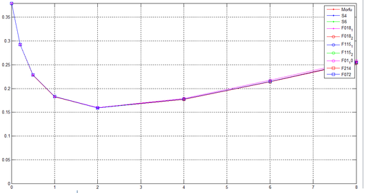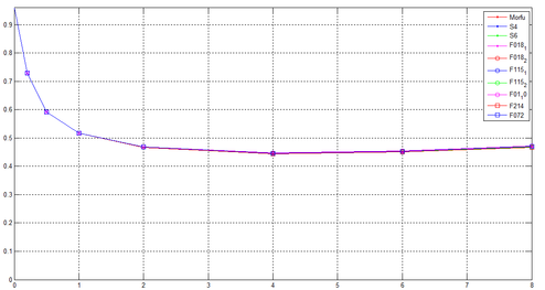 Уменьшая dV до 0, наблюдаем следующее семейство графиков погрешностей преобразования сигнала: