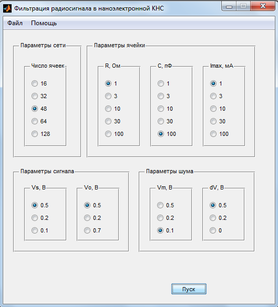 Предмет исследования – Параллельная фильтрация радиосигнала с помощью наноэлектронной клеточной нелинейной сети (КНС). КНС – эта сеть с одинаковыми элементами в узлах, соединенными между собой связями. Важными особенностями наноэлектронной КНС являются наличие сопротивления с нелинейной ВАХ, быстрая параллельная фильтрация (порядка нс).