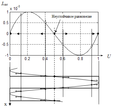 Пример графика при Vs=0,5В, V0=0,7В, Vm=0,5В, dV=0,5В (число ячеек=48):