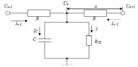 Каждый элемент представляет собой простую RC связь. Между элементами присутствует сопротивление. Примем направления токов как показано на рисунке: